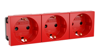 Блок розеток тройной VIVA 6 модулей 16А 2Р+Е с/ш винт красный