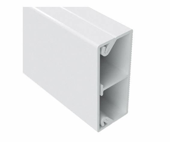 Короба DKC с шириной 40мм и 50мм могут быть как односекционные, так и двухсекционные, как TMC 40/2x17. Это позволяет отделить силовой кабель от слаботочного, снизив помехи на линии передачи данных.