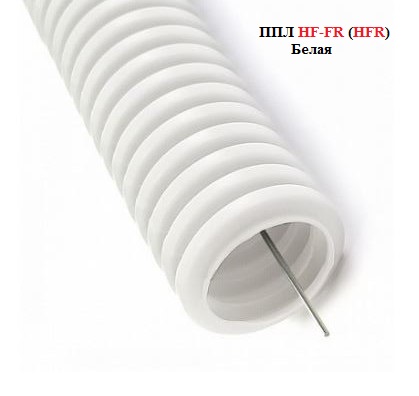 Труба гофрированная ПЛЛ ПП HF FR (нг) белая 32 с протяжкой легкая